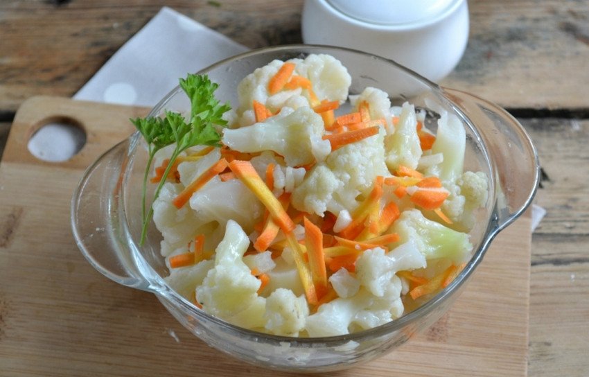 Якщо ви живете в приватному будинку і є можливість засолити овочі в діжці або дерев'яній діжці, відрі - то їх теж потрібно вимити і обдати окропом. Прибрати все зелене листя на капусті, розібрати на суцвіття. Якщо ви робите у великому обсязі заготовку - можете замочити суцвіття в холодній підсоленій воді, а потім промити проточною водою. Після цієї процедури можна бути впевненим, що нічого зайвого в капусті немає.