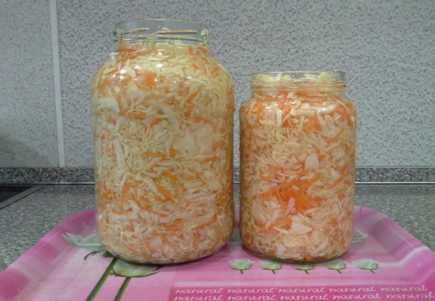 - У добре вимиту банку викласти капусту, аспірин, вилити заливку, закрити кришкою.