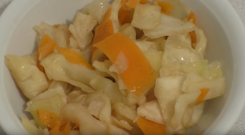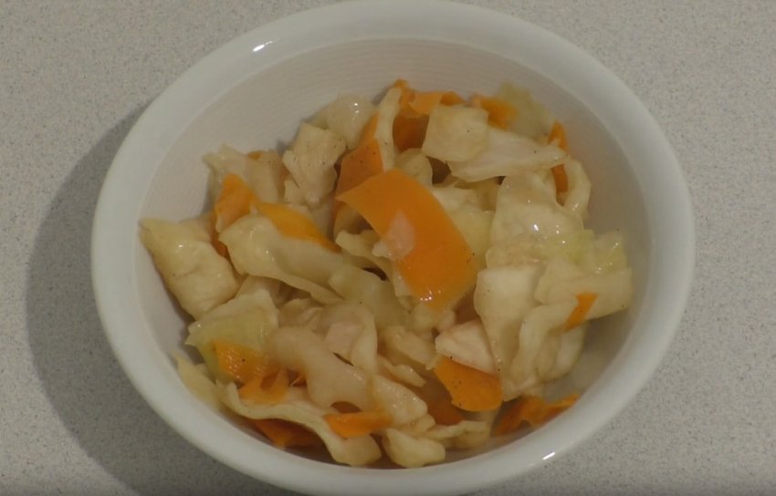 - Нарізати капусту шматочками, як описано в першому рецепті.