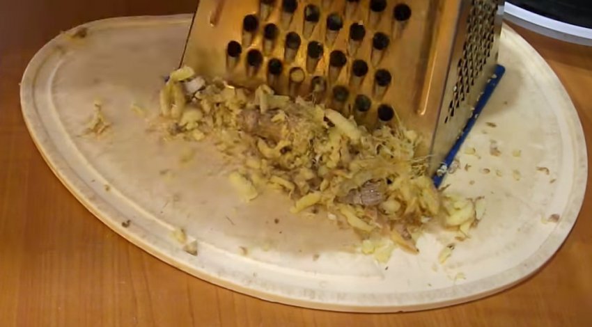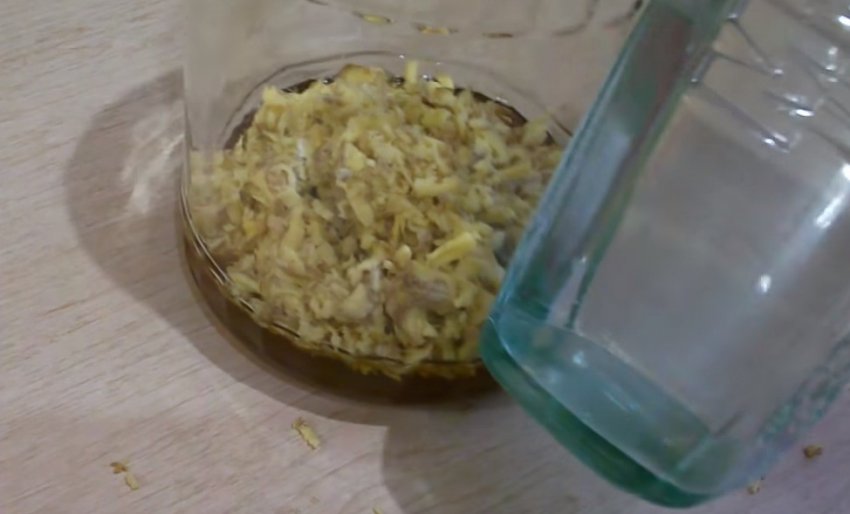 Імбир труть на тертці. Мед виливають у скляну банку.![]()