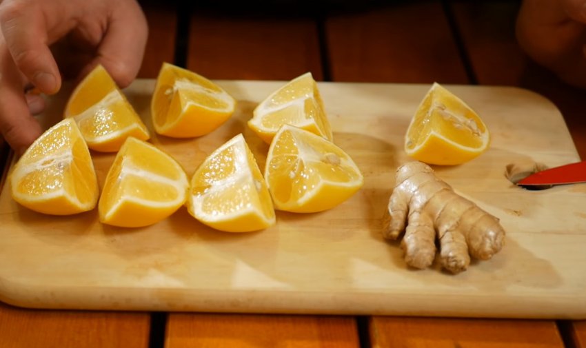 Лимони та імбир порізати на шматочки і перекрутити на м'ясорубці (лимони не потрібно очищати від шкірки і кісточок).![]()