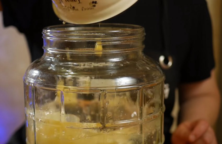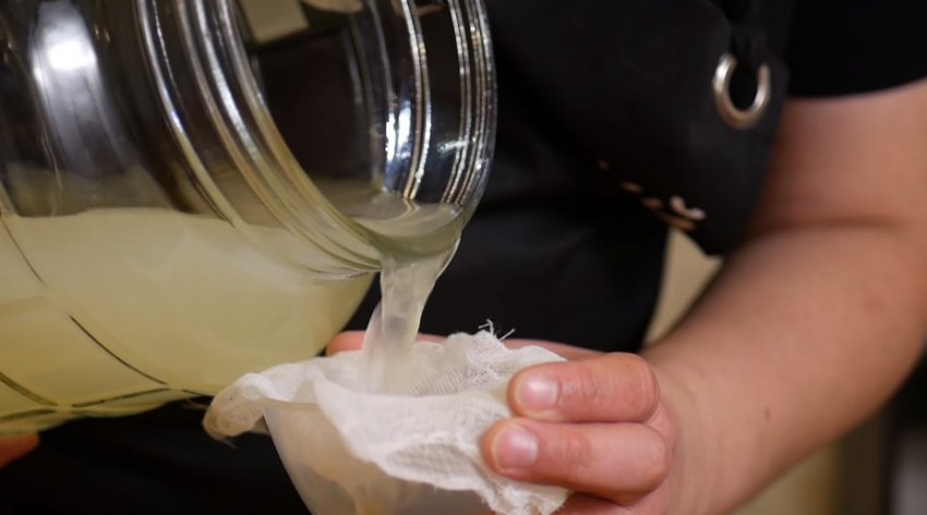 - Через зазначений час суміш необхідно процідити, приєднати до неї дріжджі та імбир, що залишився. Бажано перелити напій у дерев'яну діжку.