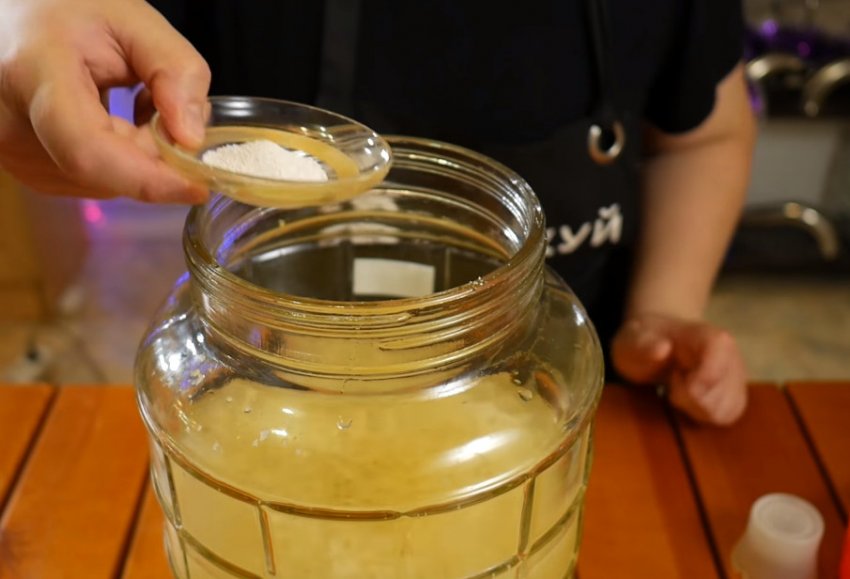 Всипати сухі дріжджі, накрити бутель кришкою і дати постояти чверть години до настання процесу бродіння![]()