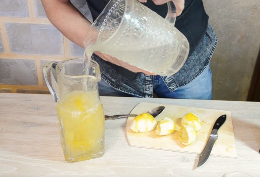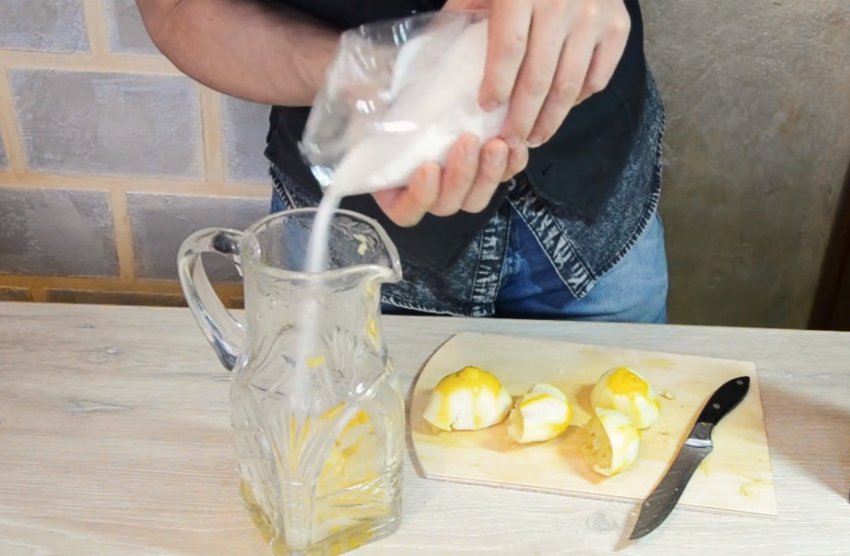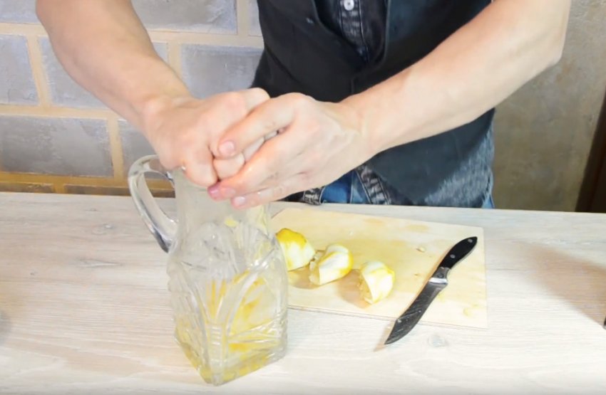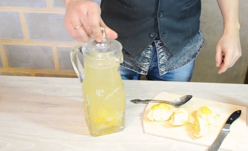 З очищених лимонів вичавити сік і влити його в ємність із заготівлею.![]()