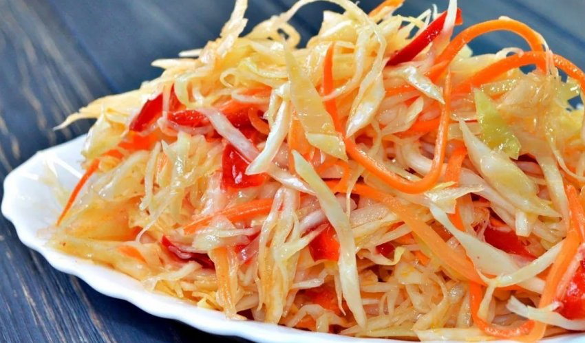 - Наріжте капусту невеликими кубиками, моркву подрібніть на дрібній тертці, а потім ретельно перемішайте овочі.