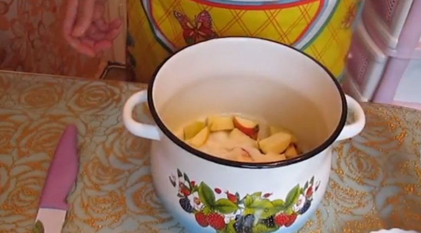Заготовлюючи фруктові компоти на зиму, їх рідко варять, оскільки плоди швидко розварюються. Зазвичай їх свіжими розкладають по банках, заливають киплячим сиропом і закатують. Але якщо перед закатуванням фрукти, зокрема і яблука, проварити в сиропі кілька хвилин, то напій стає більш концентрованим: він набуває більш насиченого смаку й аромату, а його колір стає дуже яскравим.