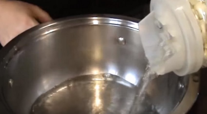 Всипати в неї цукор і сіль. Закип'ятити.![]()