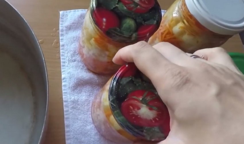 Щільно закрутити кришки. Перевернути вниз шийкою. Охолодити. Після охолодження, через добу, помістити на зберігання.![]()