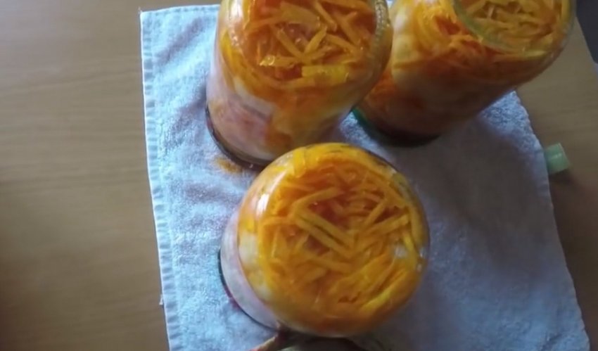 Перевернути банки шийками вниз. Після охолодження поставити на зберігання.![]()