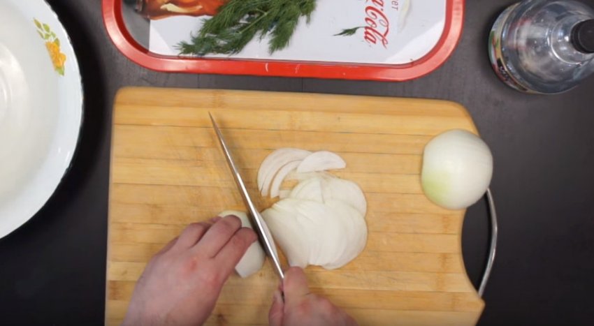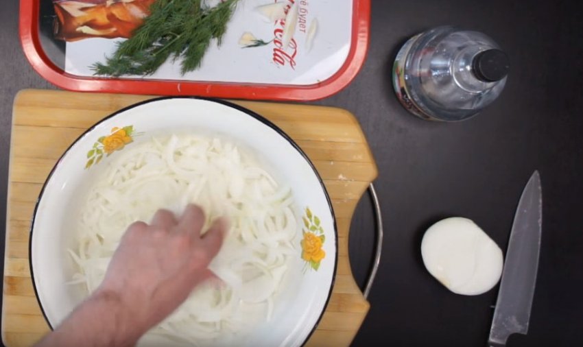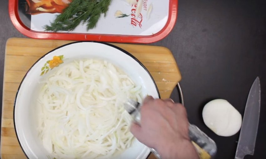 Готувати закуску до шашлику краще з великих цибулин, які слід нашаткувати великими півкільцями.![]()