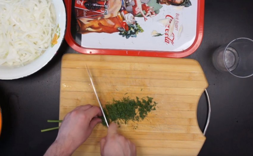 - Дрібно нашаткувати кріп і відправити в маринад.
