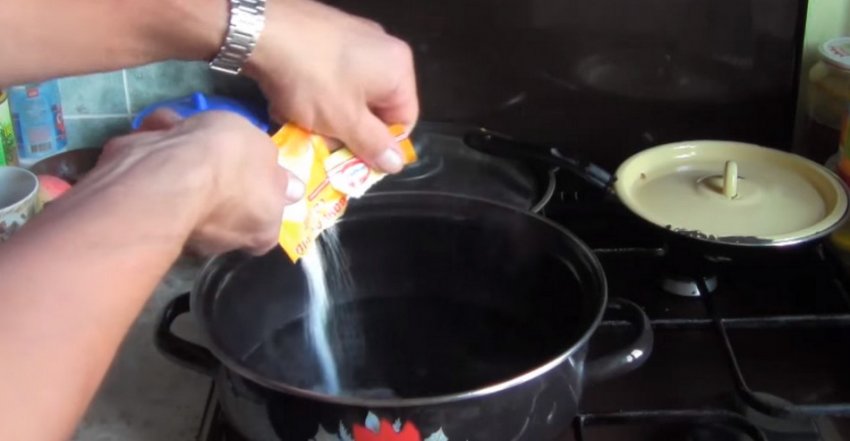 Воду кип'ятять, всипають туди цукор (можна додати пакетик ванільного цукру) і перемішують до повного розчинення.![]()