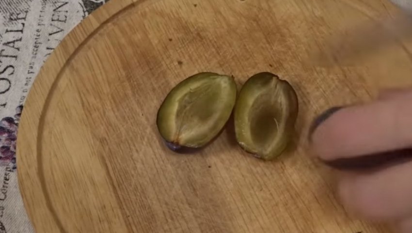 Промити сливи, розділити на половинки і видалити кісточки.![]()