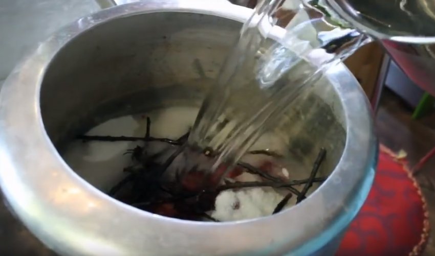 - Поступово додайте в каструлю з киплячою рідиною настоянку, що залишилася.