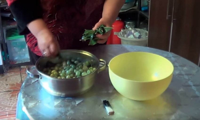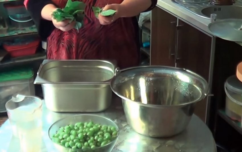 Відставити ємність із приготовленою масою на 6 год, прикривши плоди зверху провареним вишневим листям.![]()