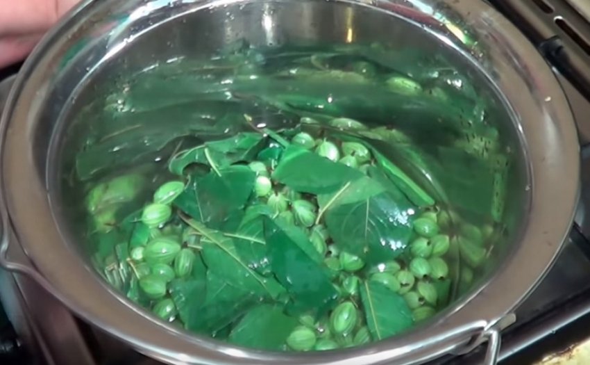Листя і ягоди добре промити. Плоди наколоти голкою, щоб вони не лопнули в процесі варіння.![]()