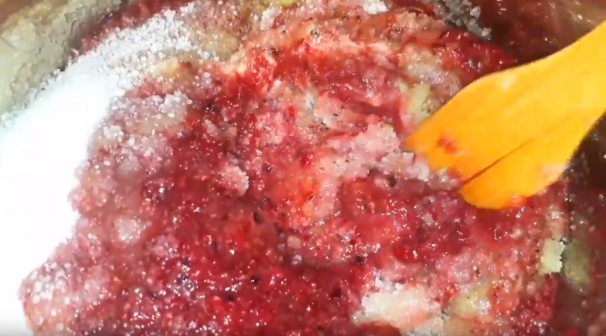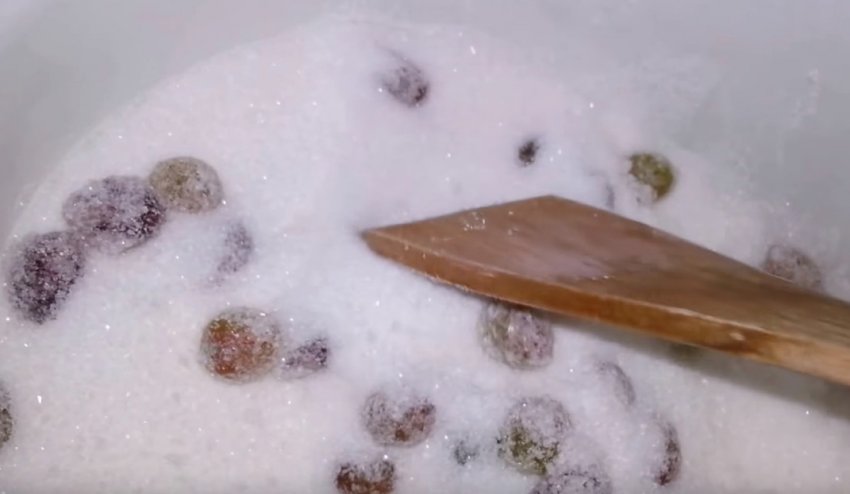 Дерев'яною або пластиковою лопаткою обережно перемішати плоди, щоб цукор розподілився рівномірно, але при цьому цілісність ягід не була порушена.![]()