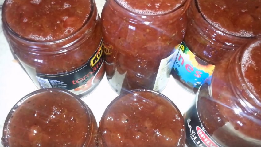 Розлити готову страву в попередньо простерилізовані банки та дати повністю охолонути. Після цього накрити кришками.![]()