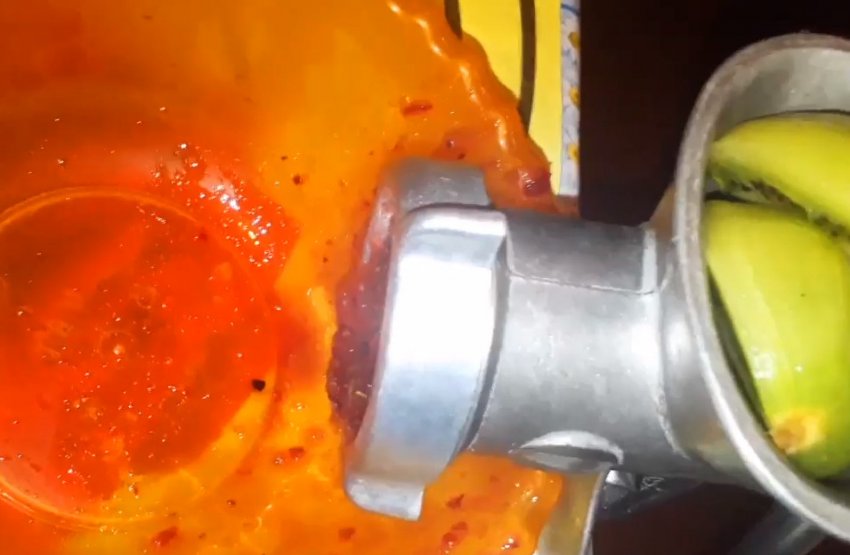 Розлити готову страву в підготовлені банки, закатати кришками, перевернути, укутати цупкою тканиною і дати повністю охолонути.![]()
