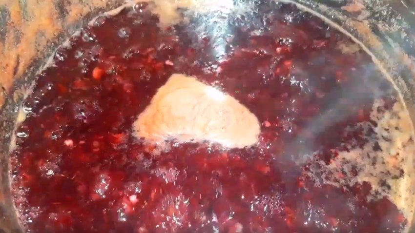 Дати закипіти, через 20 хвилин ємність із вмістом прибрати з плити, залишити на 8-10 годин остигати.Через зазначений час видалити піну, якщо вона з'явиться, ємність знову поставити на вогонь на півгодини.![]()