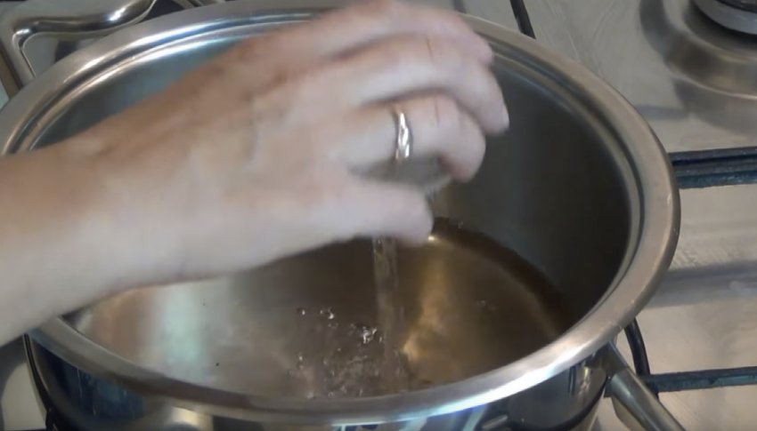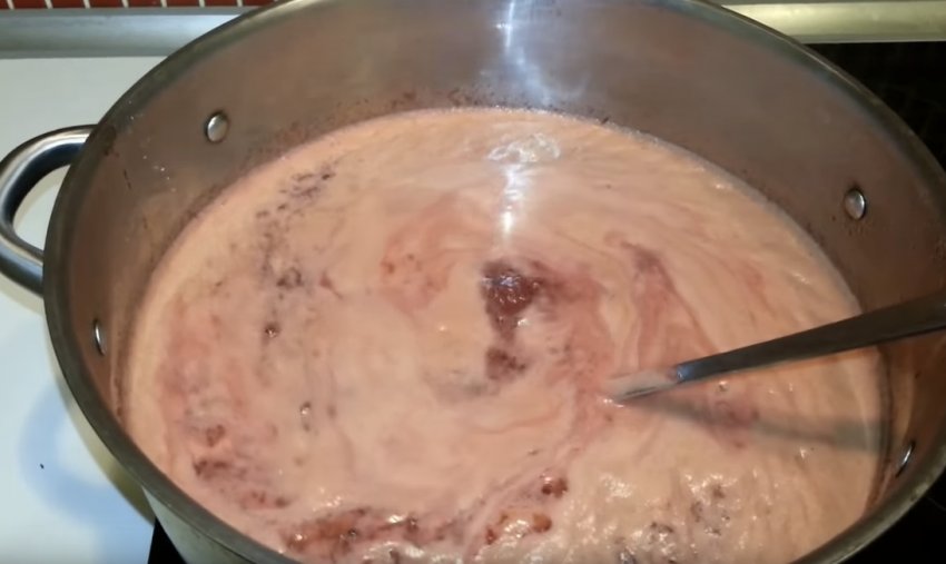 - Поставити ємність із вмістом на дуже повільний вогонь, дати закипіти, після чого кип'ятити 3 хвилини. Якщо утворилася піна, то її необхідно прибрати.