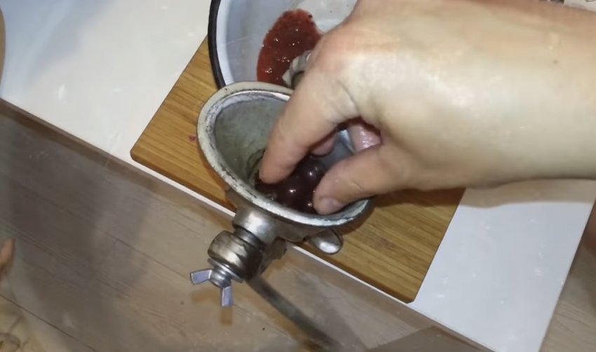 - Ягоду помити, висушити, прокрутити через ручну соковижималку або механічну м'ясорубку.