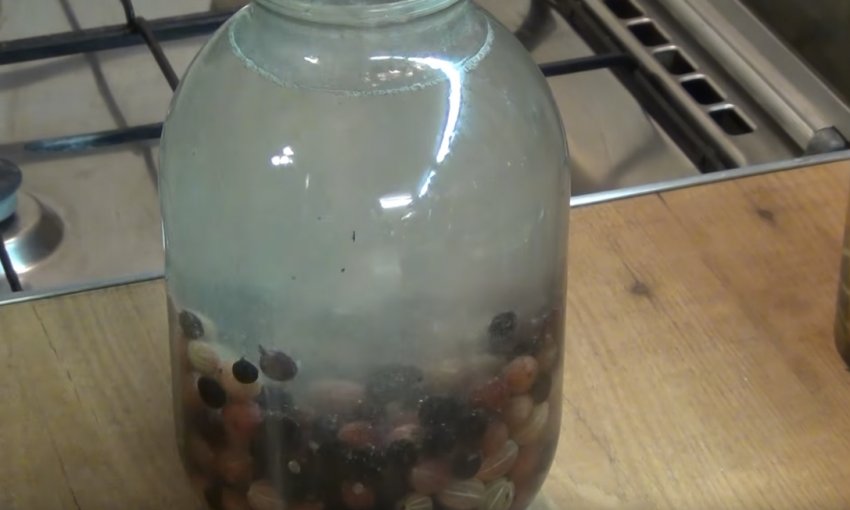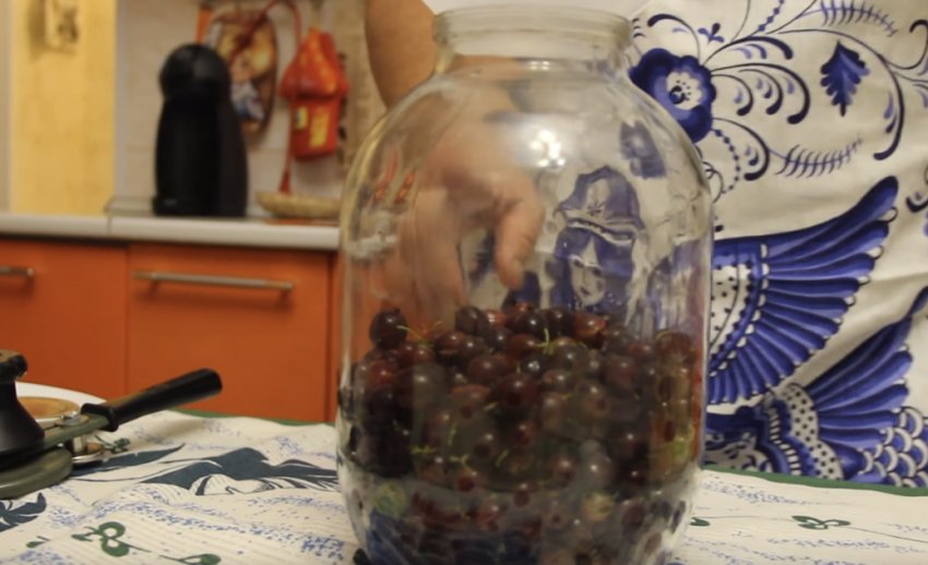 Ягоду перебрати, помити, засипати в банку (має вийти 1/2 трилітрової бутлі), яку потрібно попередньо акуратно обполоснути окропом.![]()