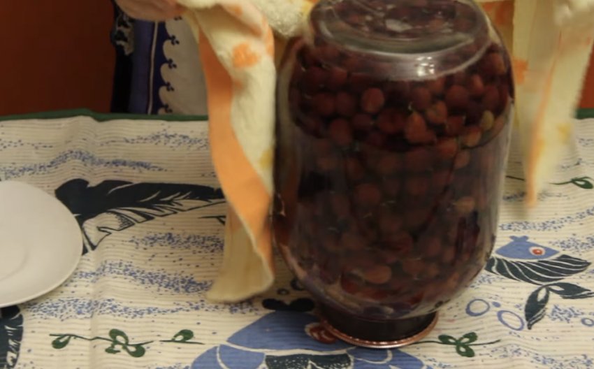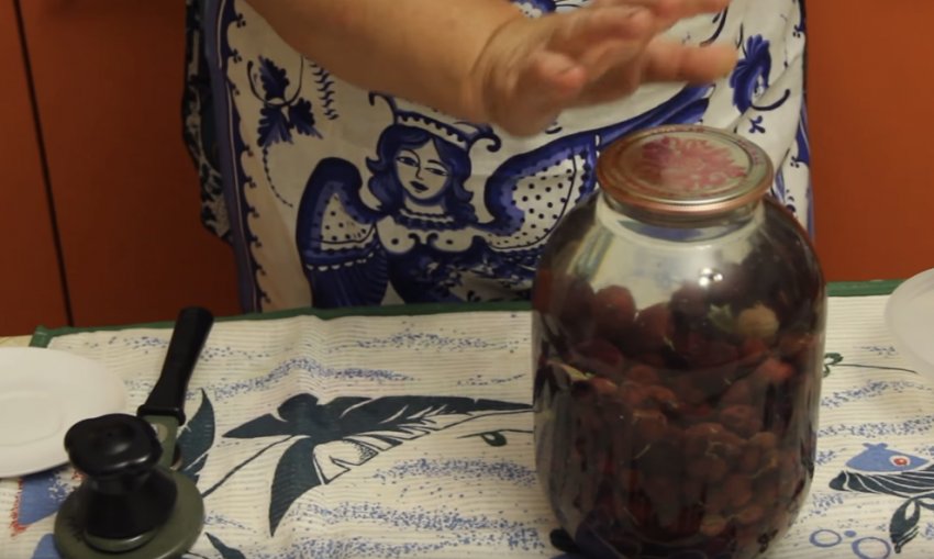 Закатати бутель кришкою, перевернути, накрити щільною ковдрою. Через 16-20 годин можна прибирати компот туди, де він зберігатиметься всю зиму.![]()