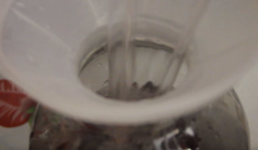 Після того, як рідина охолоне до 45-50°С, злити її і довести до кипіння, влити оцет.![]()