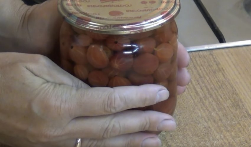 Банки з маринованим аґрусом встановити на кришки, укрити пледом, поки вони не охолонуть.![]()