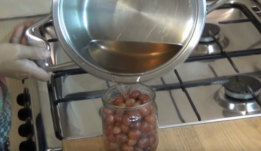 Як тільки маринад почне закипати, залити ним банки з аґрусом, закатати стерилізованими кришками.![]()
