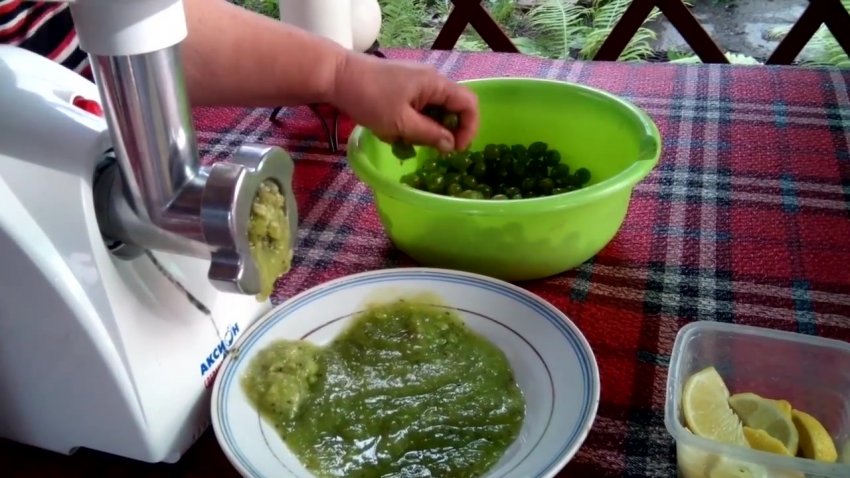 На наступному етапі ягоди і підготовлені часточки лимона прокручуються в м'ясорубці до однорідної консистенції.![]()