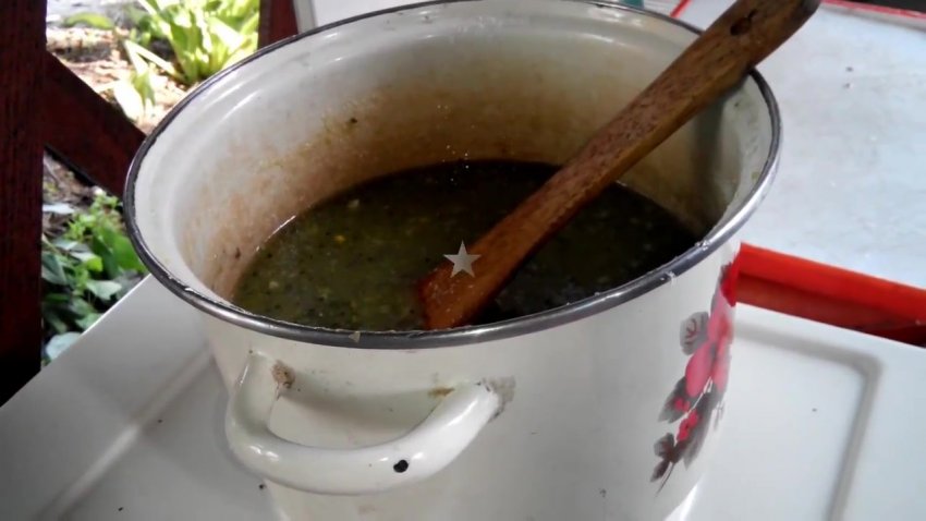 Отримана маса ставиться на вогонь і доводиться до кипіння. Важливо - не забувати помішувати суміш. Після закипання потрібно відразу ж вимкнути плиту, не даючи суміші кипіти.![]()