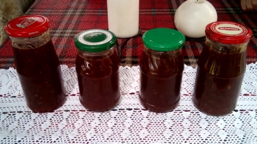 Банки з варенням, приготованим за будь-яким із наведених вище рецептів, рекомендується зберігати в прохолодному і темному місці. Тару тримають якомога далі від опалювальних приладів. Крім того, на заготовки в жодному разі не повинні впливати прямі сонячні промені. Найкращим сховищем для них є сухий льох або комора у квартирі.