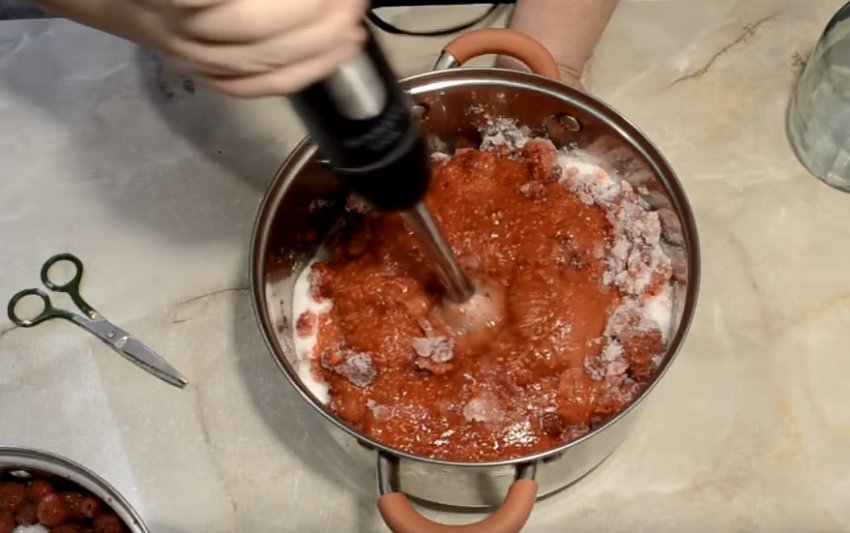 Протирати малину з цукром на варення просто, зайвих зусиль при цьому докладати не потрібно. За часом усі дії займають небагато.