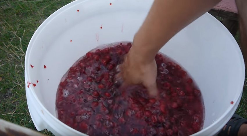 - Прикрити марлею ємність, на 2⁄3 наповнену рідкою ягідною масою. Прибрати її в тепле місце на 10 днів для первинного бродіння. Суміш перемішувати по 3-4 рази щодня, щоб вона не покрилася цвіллю.