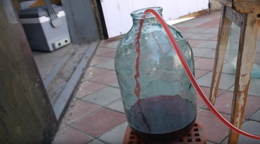 Підготувати чисті скляні бутлі. Перелити в них напій за допомогою силіконового шланга. При цьому край трубки потрібно опускати в ємність із нефільтрованою рідкою сумішшю так, щоб він перебував на 5-6 см вище від утвореного на дні осаду.![]()
