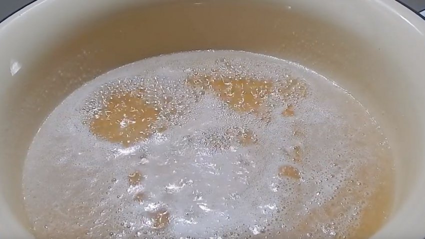 В емальовану каструлю або тазик вливають воду, потім додають туди цукор і доводять до кипіння.![]()