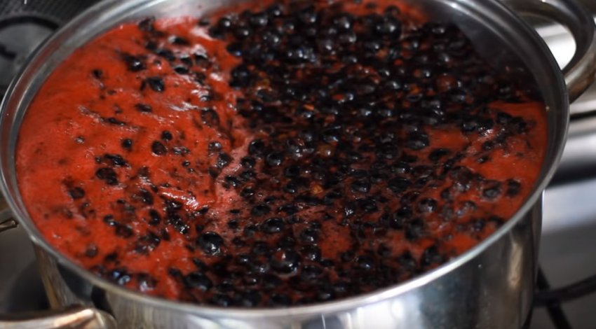 - В емальовану каструлю або таз укладають ягоди. Ставлять на слабкий вогонь, щоб вони пустили сік. Помішують, щоб не підгоріло.