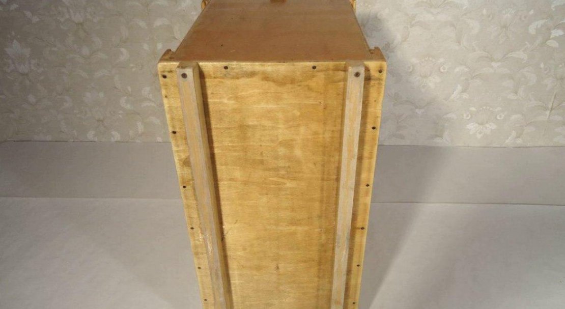 - Встановити на одній з бічних граней невеликі дверні петлі, до яких приєднати верхню частину ящика.