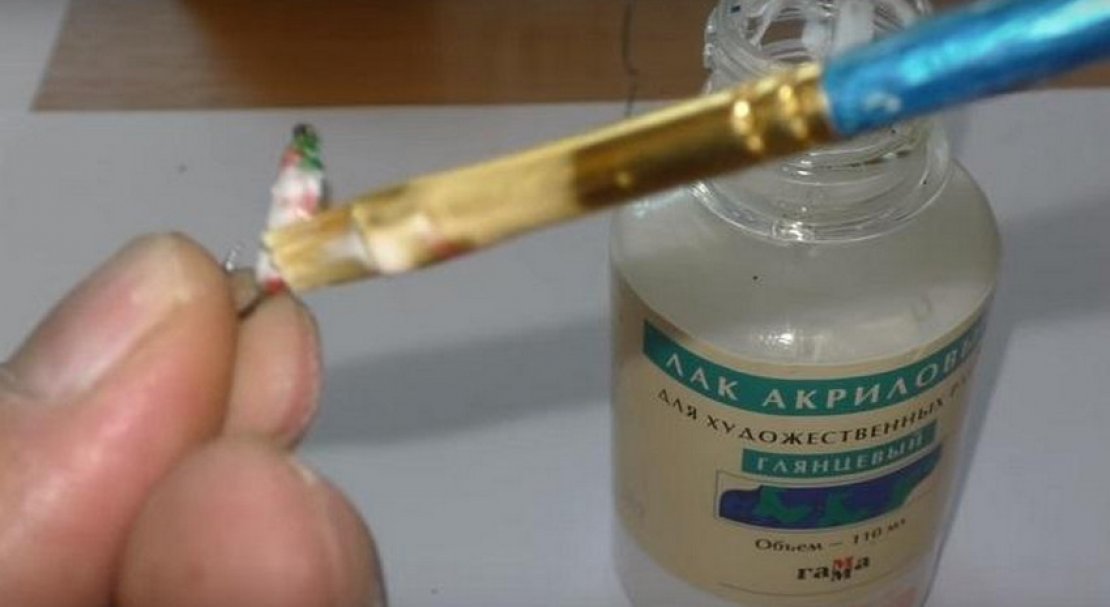 - Пофарбуйте мормишку лаком для нігтів або будь-якою нітрофарбою. Після того як все висохне, надіньте на гачок намистинку