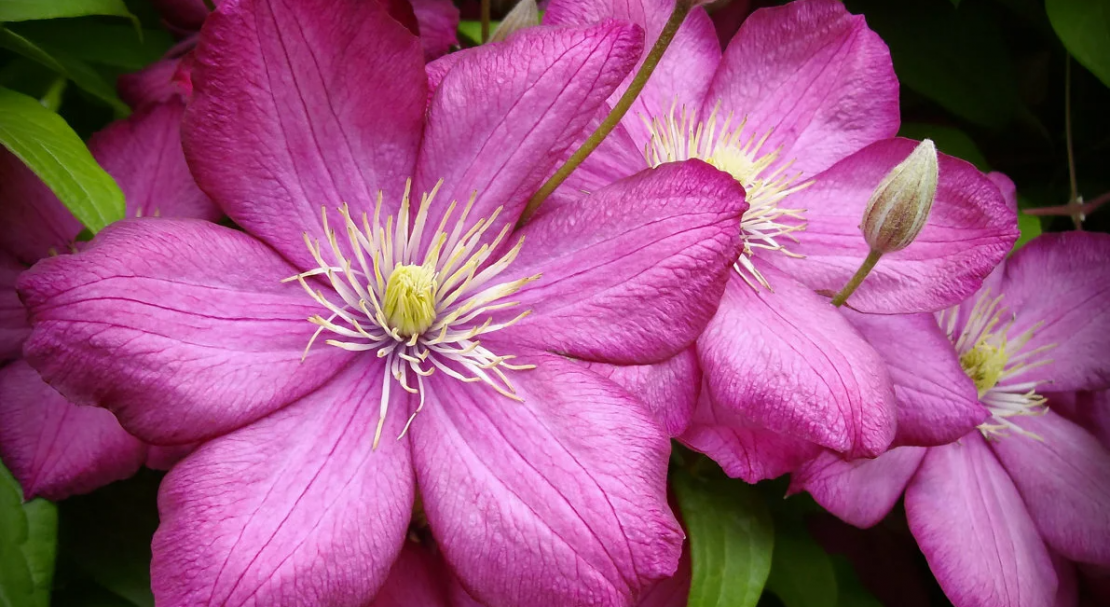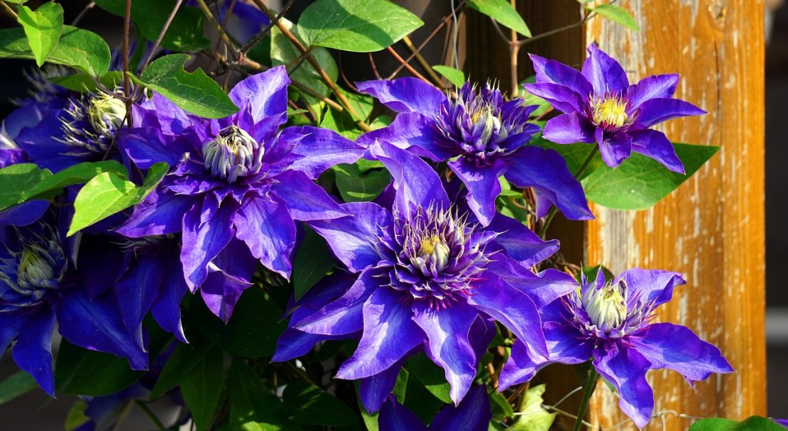 Більшість сортів цвітуть від травня до вересня різними відтінками білого, синього, рожевого і фіолетового. Клематис стійкий до холоду, але ви повинні уникати накопичення води навколо коренів у холодні місяці. Прекрасний плазуючий кущ, який при правильному догляді прикрасить сад на наступні 20-30 років. Любить сонячні, але не дуже спекотні місця і родючу рихлу ґрунт.