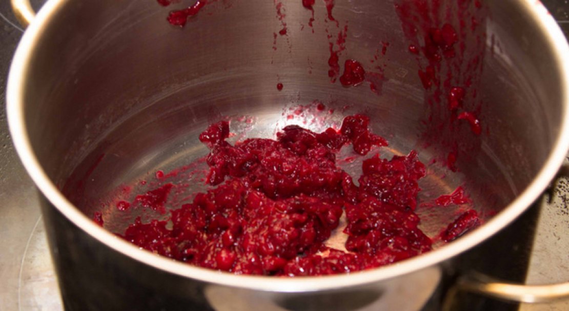 - Розімніть склянку брусниці і залийте 2 склянками холодної води.