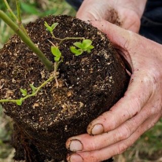 - Вийміть саджанець з ємності, у якій він прибув. Огляньте коріння. Рекомендується їх укоротити, зрізавши кінці, для того, щоб стимулювати їх подальший розвиток.