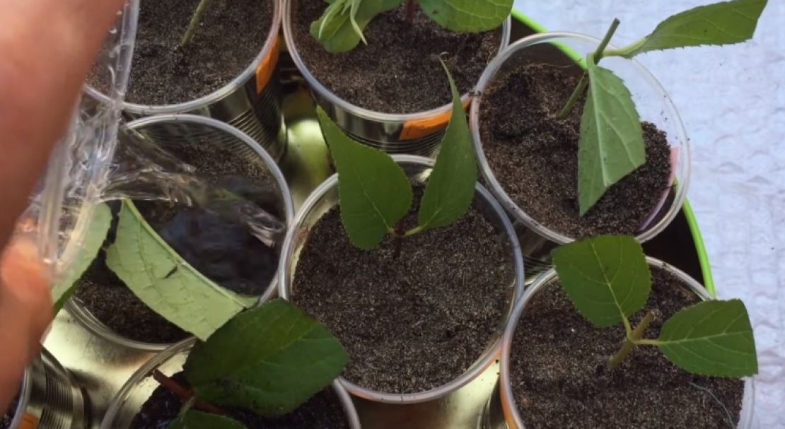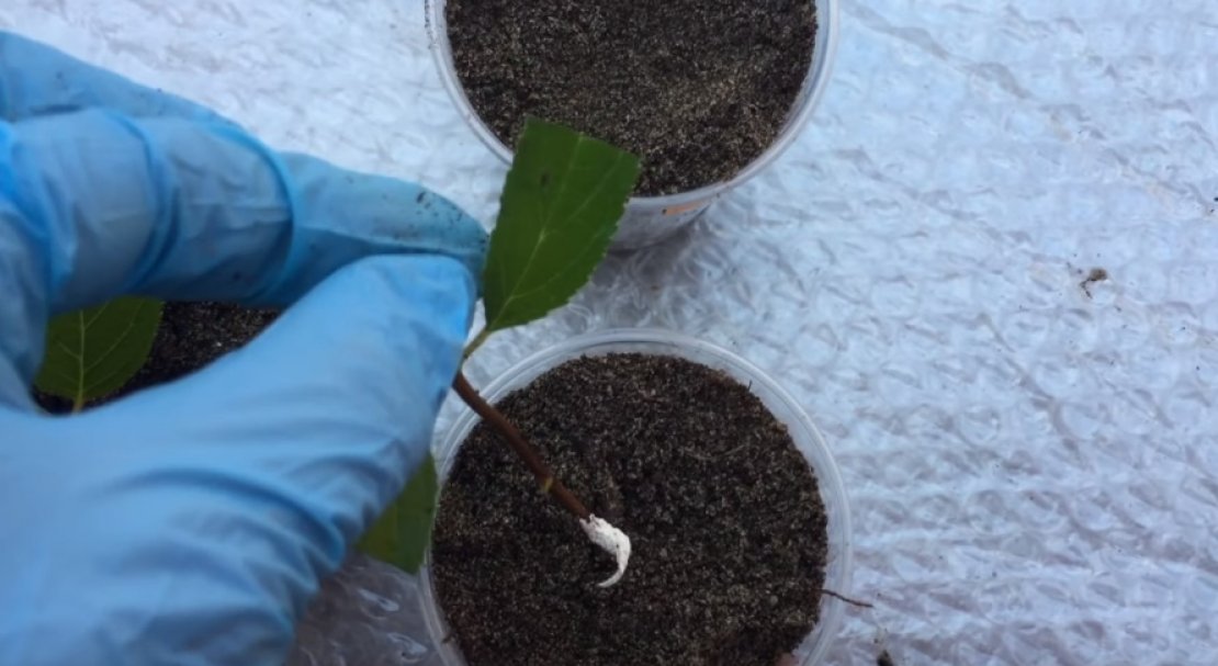 Далі черенки висаджуються в контейнери, заповнені живучим субстратом, присипаються тонким шаром піску, накриваються плівкою і проростаються за кімнатної температури на розсіяному світлі. Протягом усього періоду проростання необхідно дбати про підтримання помірної вологості в міні-теплицях. Важливо подбати про дренування, для цього в дні контейнерів роблять отвори.