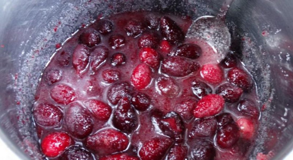 - Ягоди звільняють від кісточок і засипають цукром у пропорції 1:1. Настоюють протягом 24 годин.