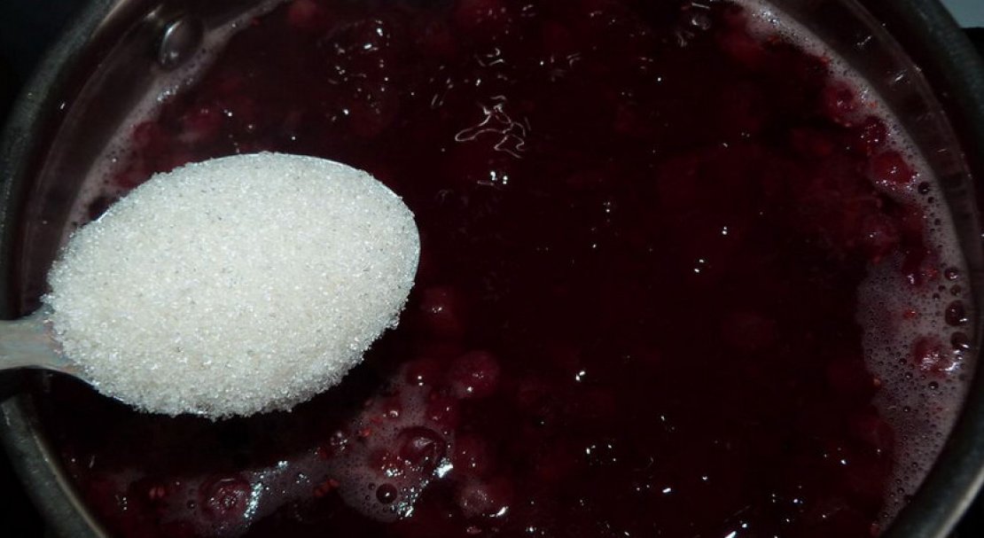 - Ягідний макуха висипте у воду, ретельно розмішайте. Якщо замість меду будете додавати цукор, засипайте його на цьому етапі.