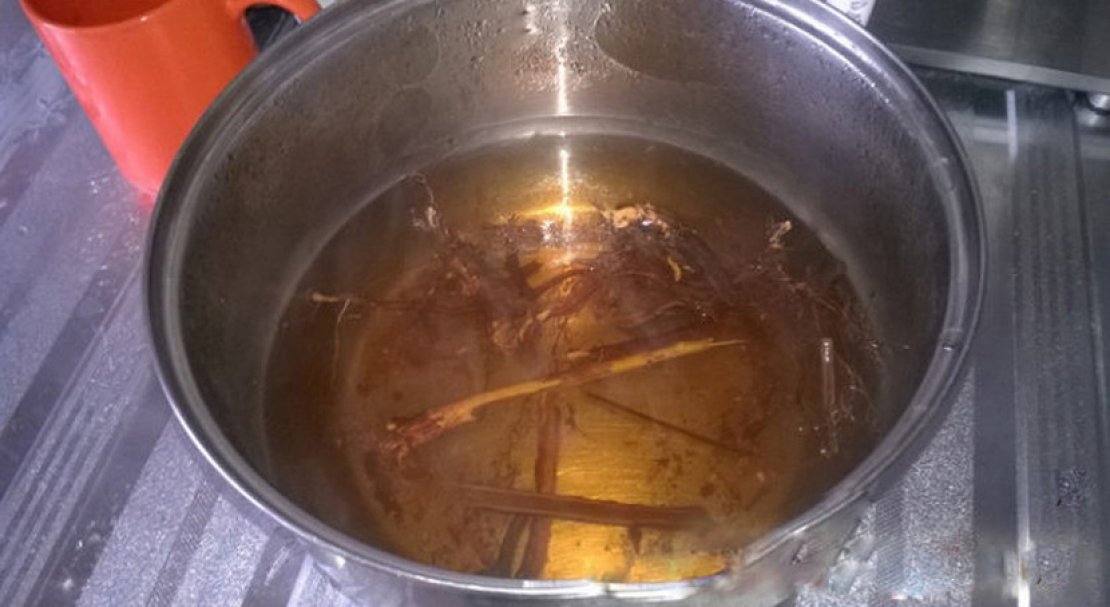 Для приготування цього засобу коріння малини потрібно розібрати на волокна і в співвідношенні 1:20 з водою зробити відвар. На малому вогні суміш потрібно варити близько 45 хвилин, а потім настоювати 2 години. Щоб надати напою смак, можна додати лимон, а для посилення лікувального ефекту — мед.