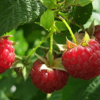- Зелені живці беруть з однорічних пагонів у травні. Зрізи обов'язково обробляють деревним вугіллям щоб уникнути загроз. Живці ставлять у живильне легку грунтову суміш, а через місяць разом з грудкою землі висаджують на ділянку.![Розмноження малини зеленими живцями Розмноження малини зеленими живцями]()