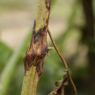 - Кореневий рак — бактеріальне захворювання, що пошкоджує кореневище культури. Цей недуг може бути викликаний низкою причин: вирощування на одному місці тривалий період, спекотний клімат при відсутності поливів, ґрунт з підвищеним кислотністю. Хвороба призводить до загибелі рослини. Таку малину потрібно видерти та спалити, а ґрунт пролити розчином мідного купоросу і не саджати на ділянці нічого протягом кількох років. Для профілактики утворення кореневого рака, перед висадкою таким засобом обробляють і корені, і землю під посадку. Малину підживлюють калійними та фосфорними добривами.
